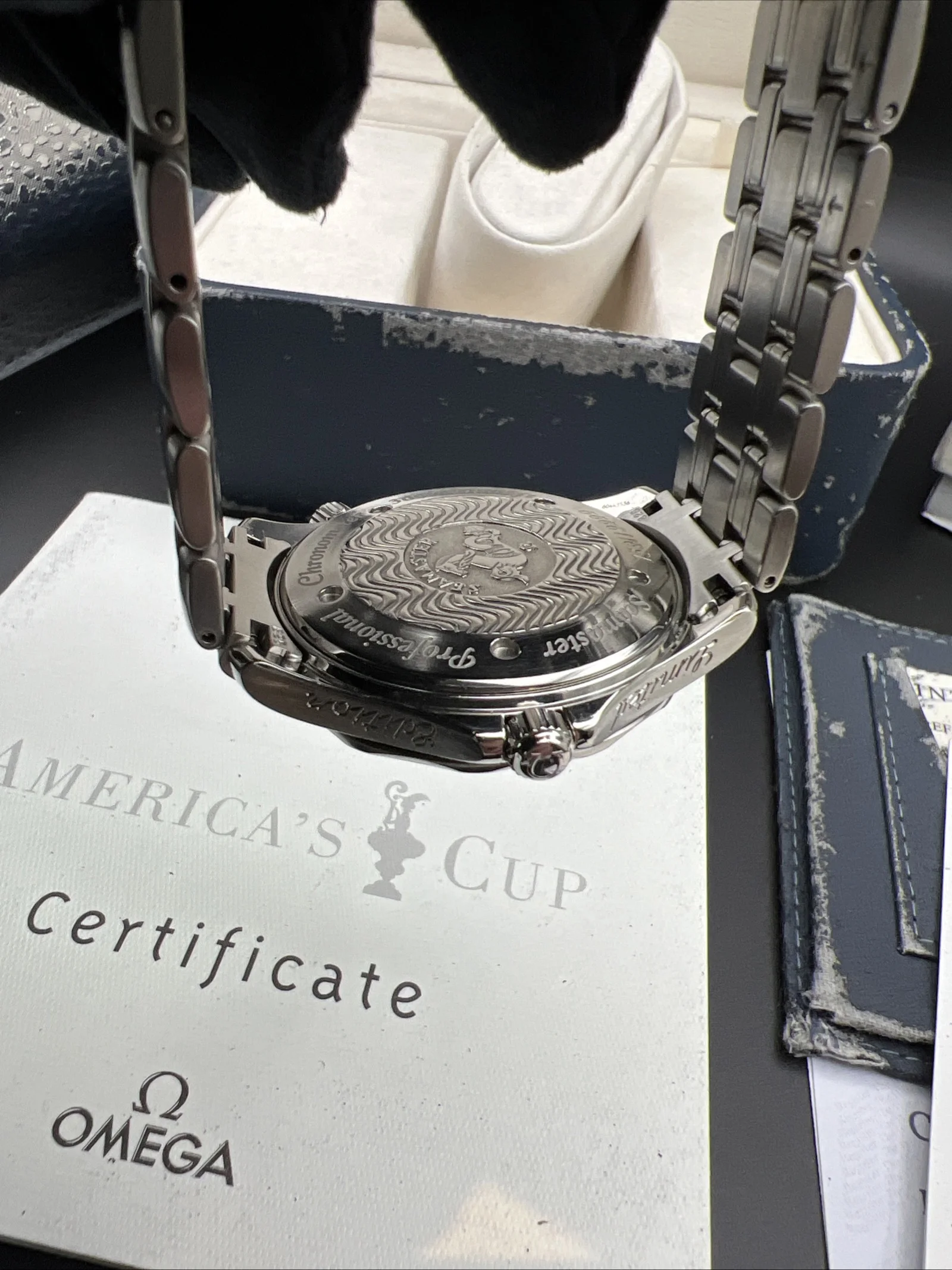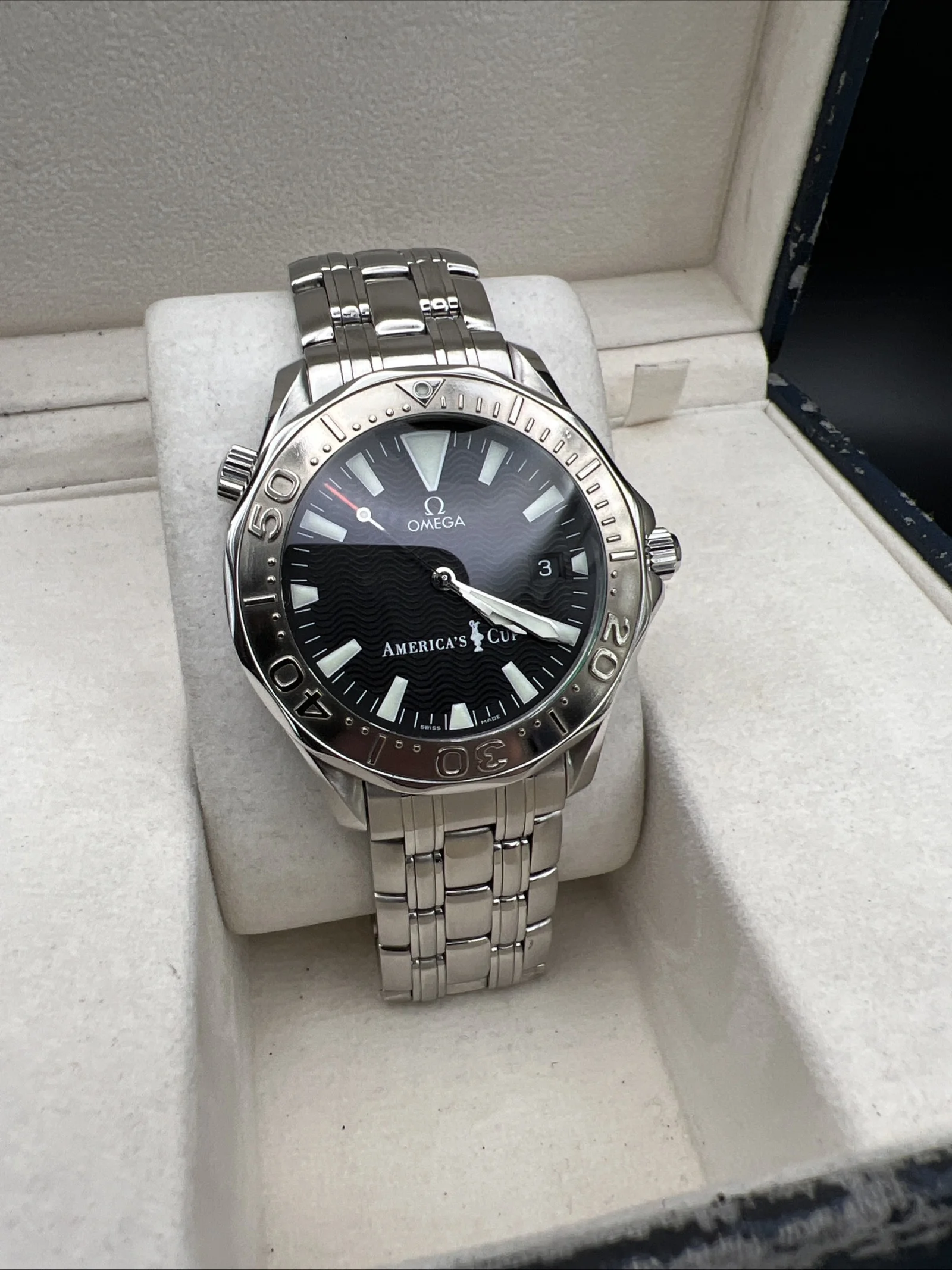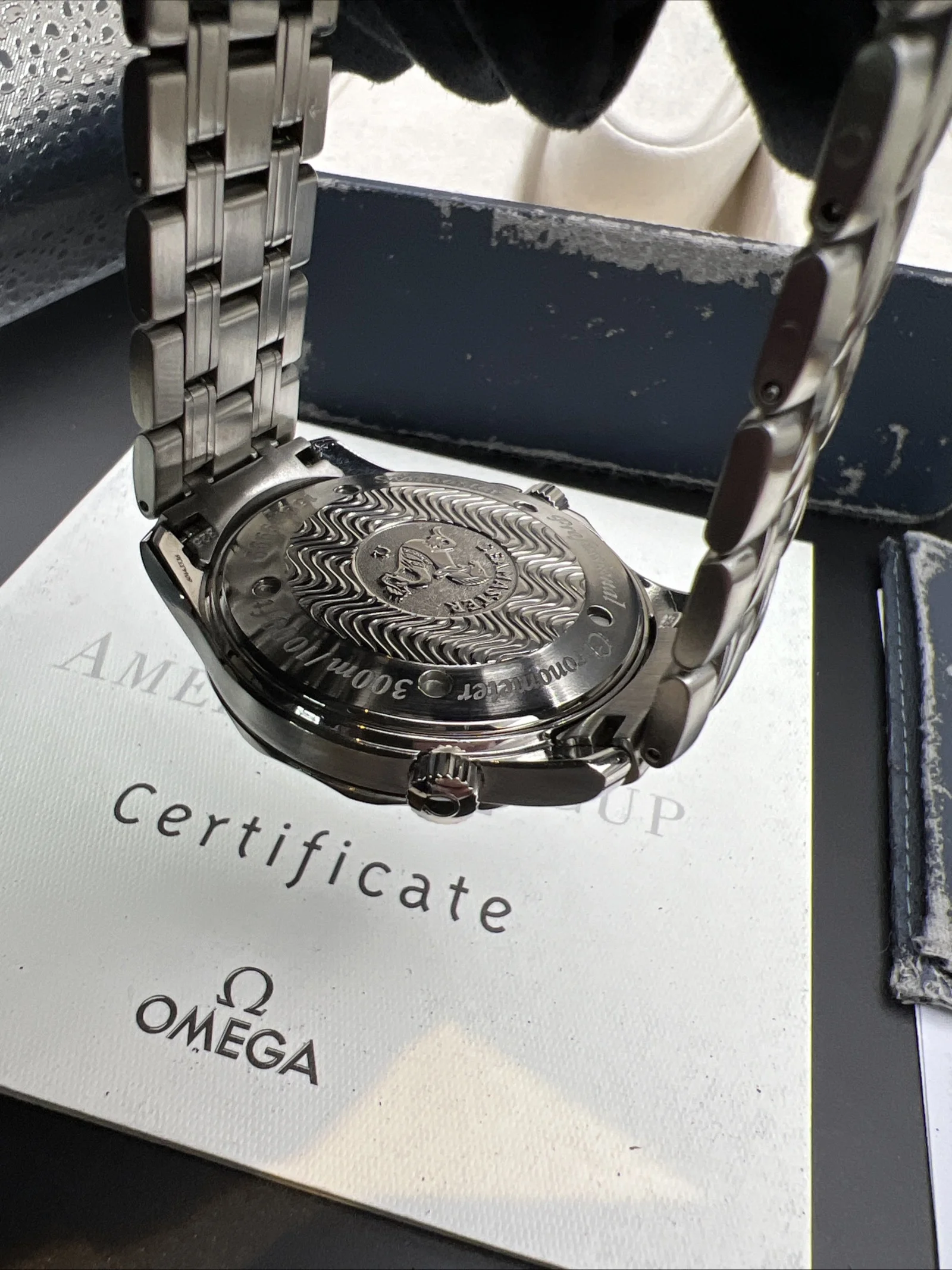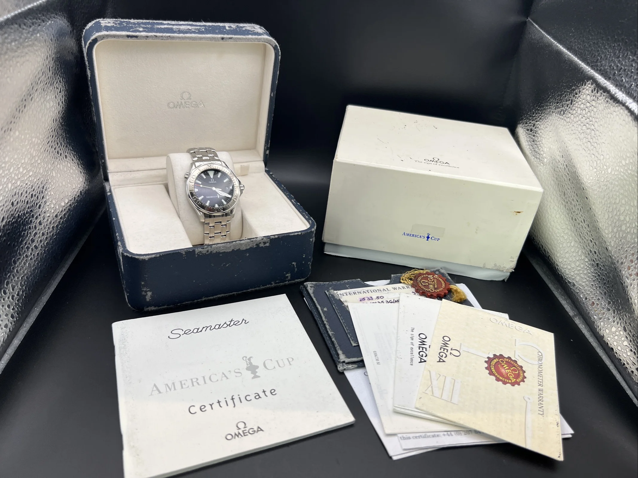 Omega sea master special edition America’s Cup stainless steel automatic gents wrist Watch. This comes presented as a full set from the year 2000.