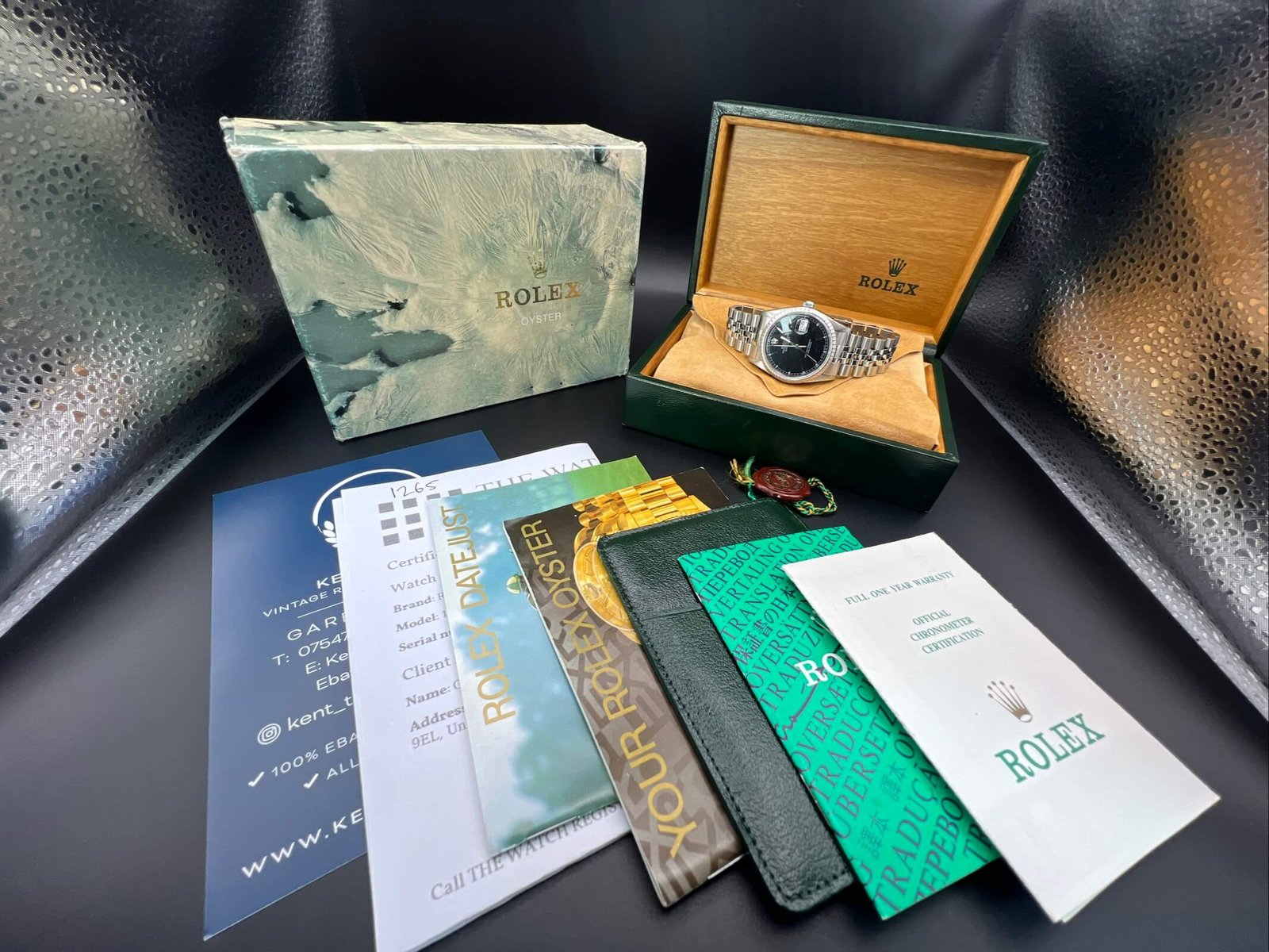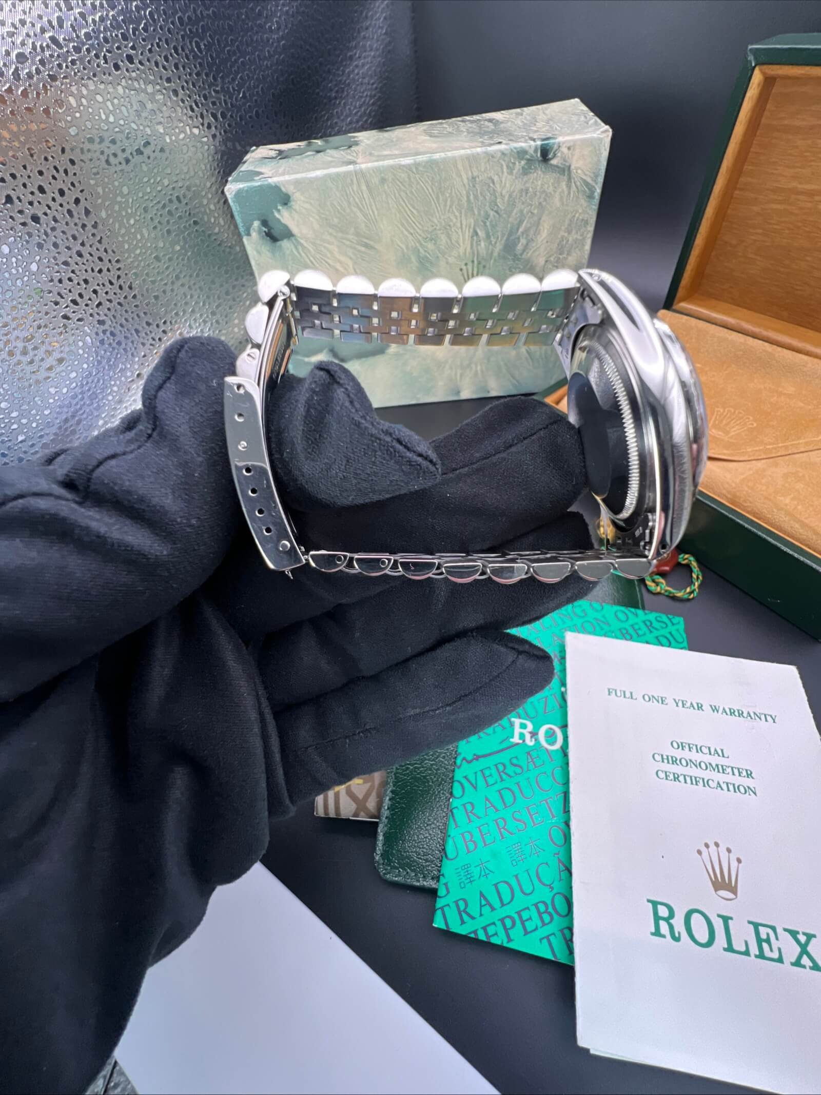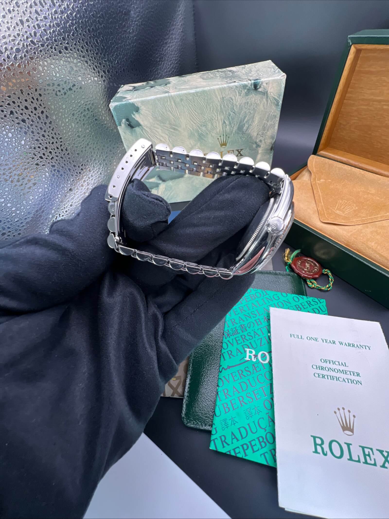 You will receive Rolex boxes, Rolex papers,Rolex booklets, Rolex Tag, Rolex Wallet and Spain links. Also included a Watch register certificate.