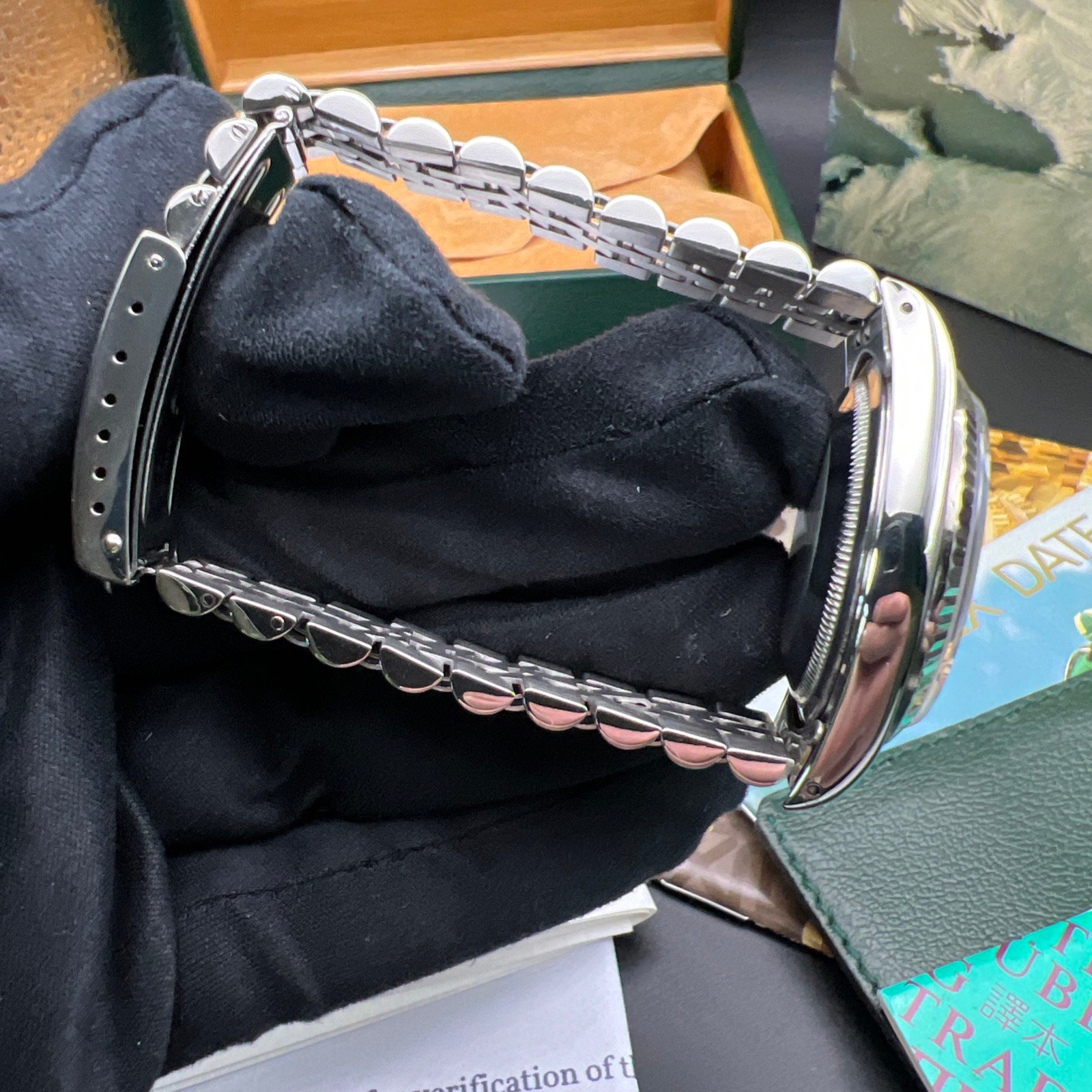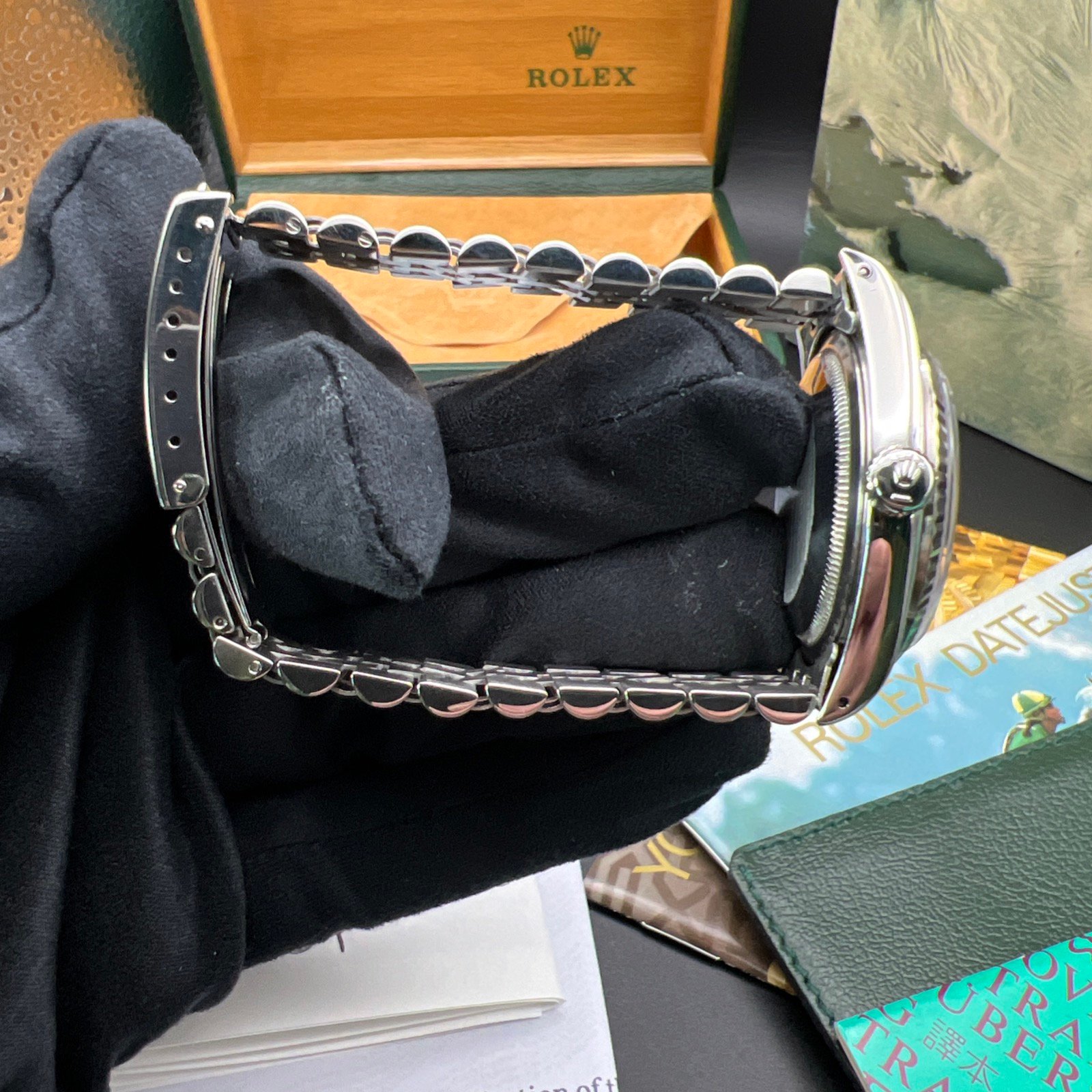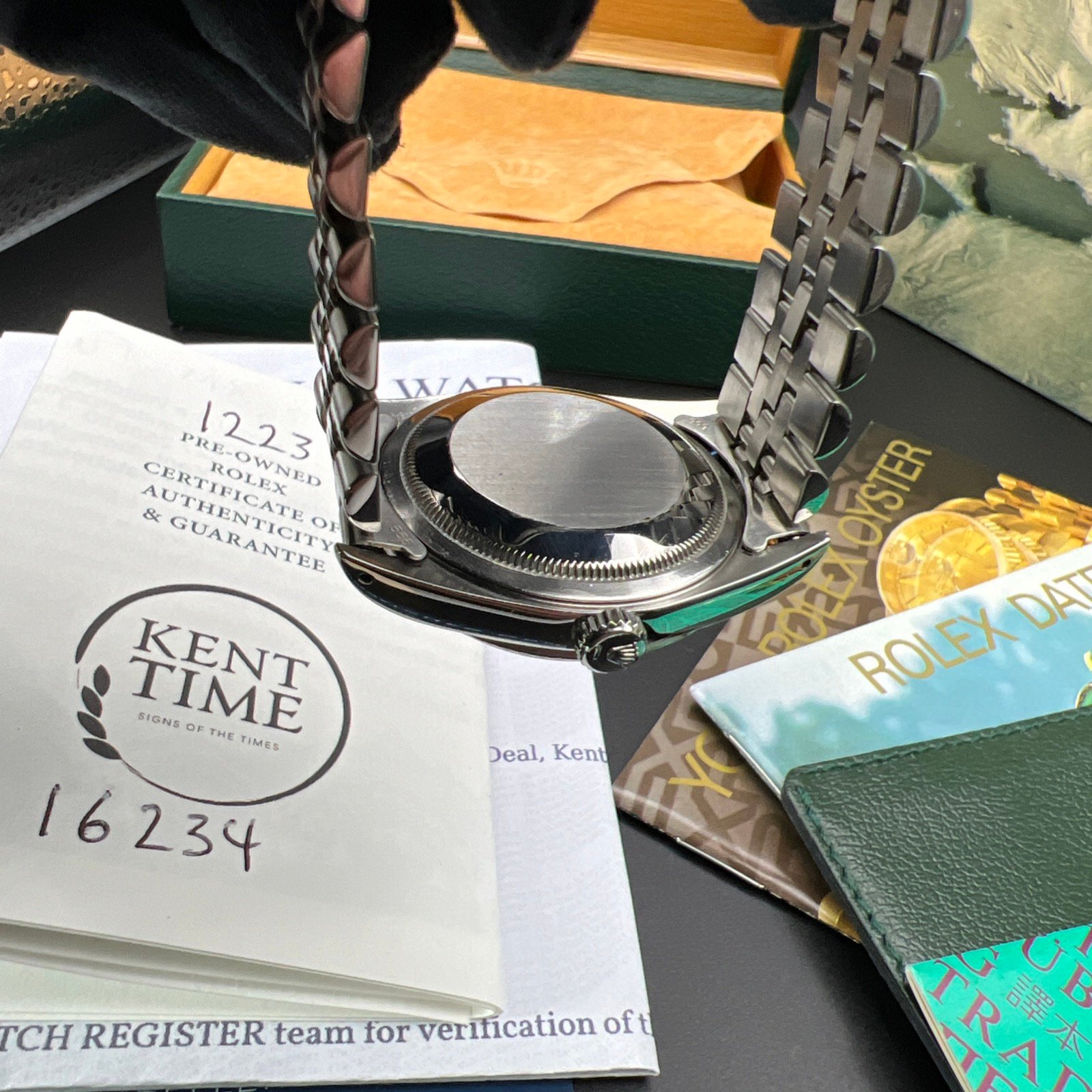 The Watch comes presented with Rolex boxes, booklets, wallet, and tag. You will also receive a copy of a Watch registered certificate and our certificate.