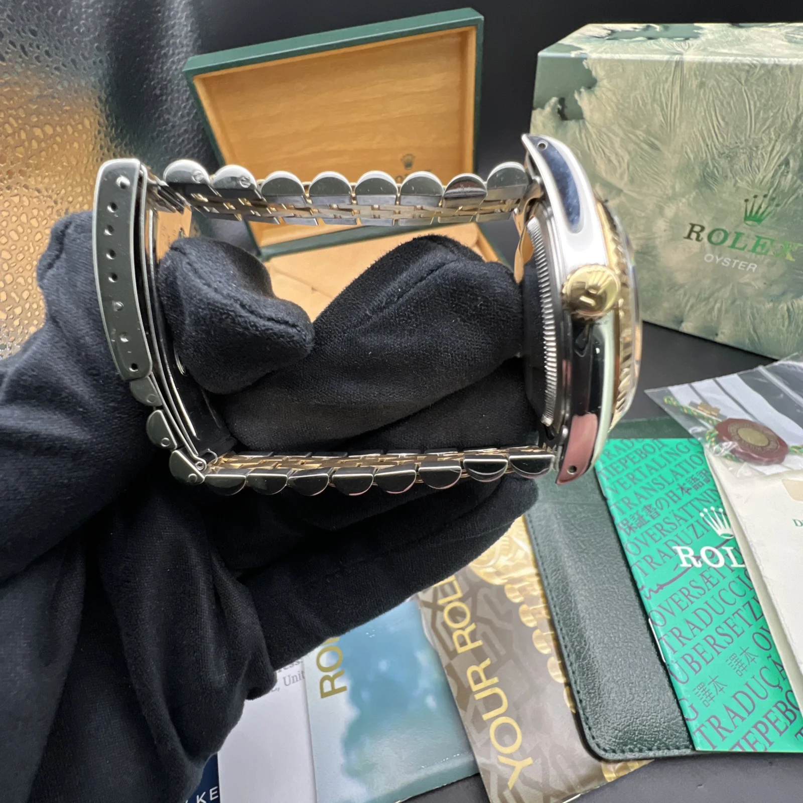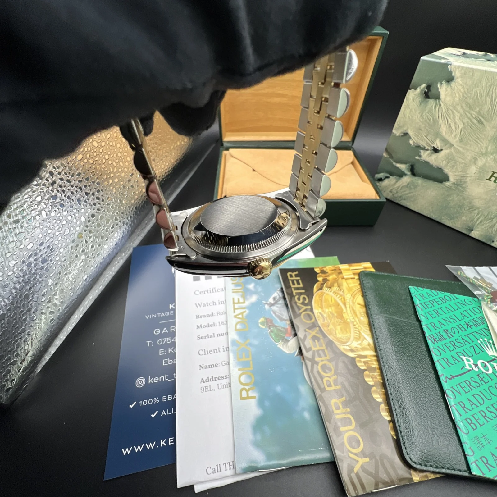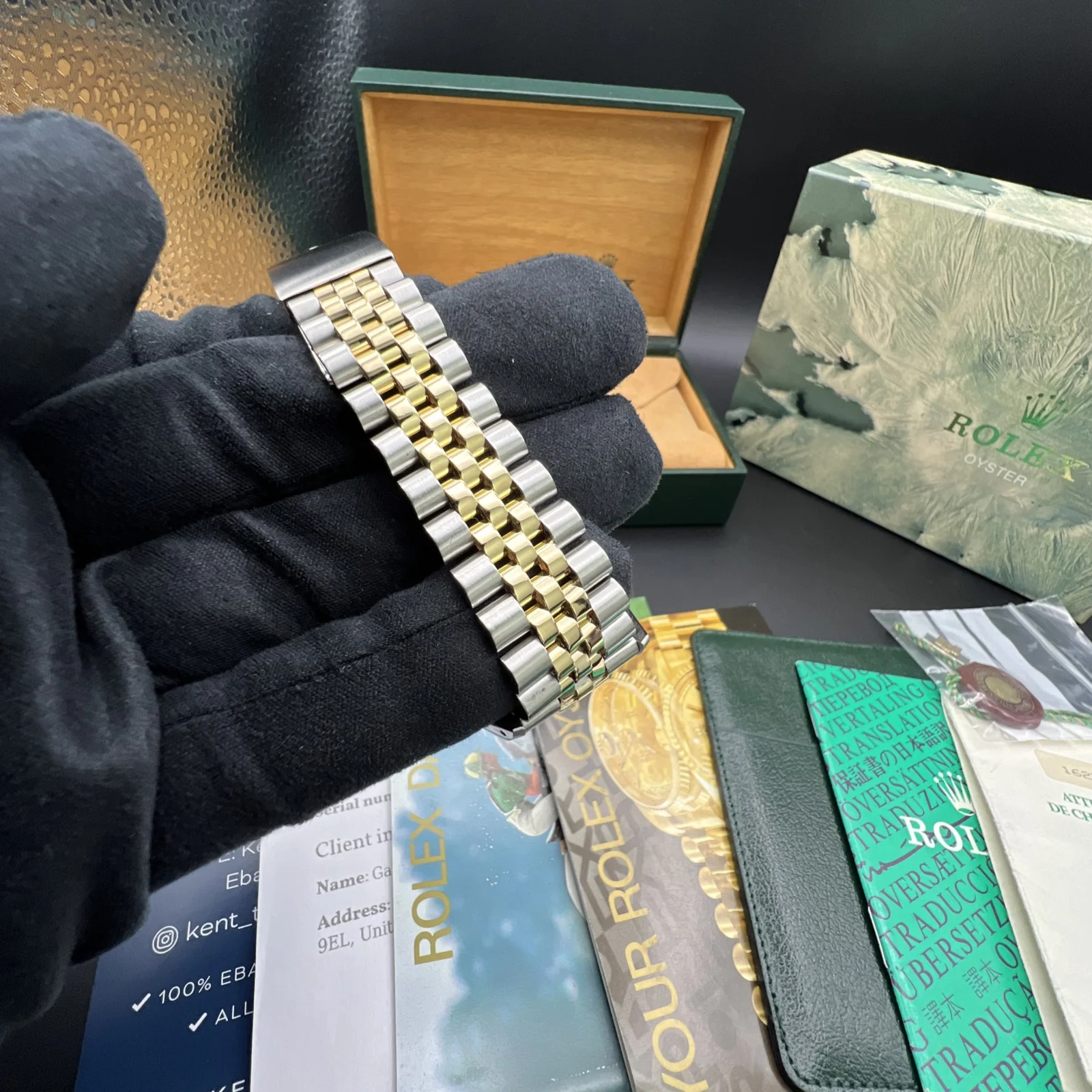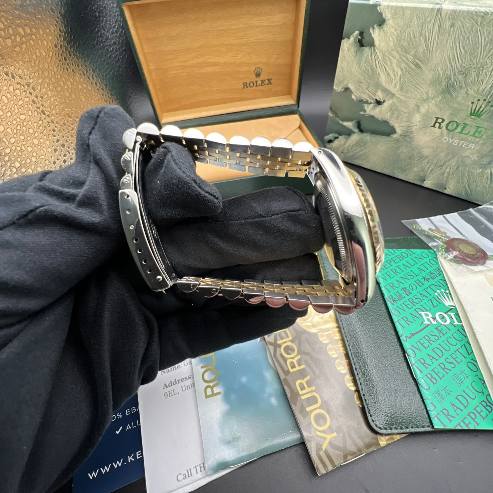 | Stunning Rolex Datejust 16233 from 1994. The watch is presented in very nice condition., keeping time and operating as it should. It has been inspected by our watchmaker prior to listing. There are light marks from use , nothing you wouldn’t expect from a watch of this period. It retains its original case back sticker and the bracelet hasn’t much stretch . The diamond dial is stunning. It comes complete with what you see in the pictures. Rolex boxes, papers, tag, booklets and watch register certificate. |
