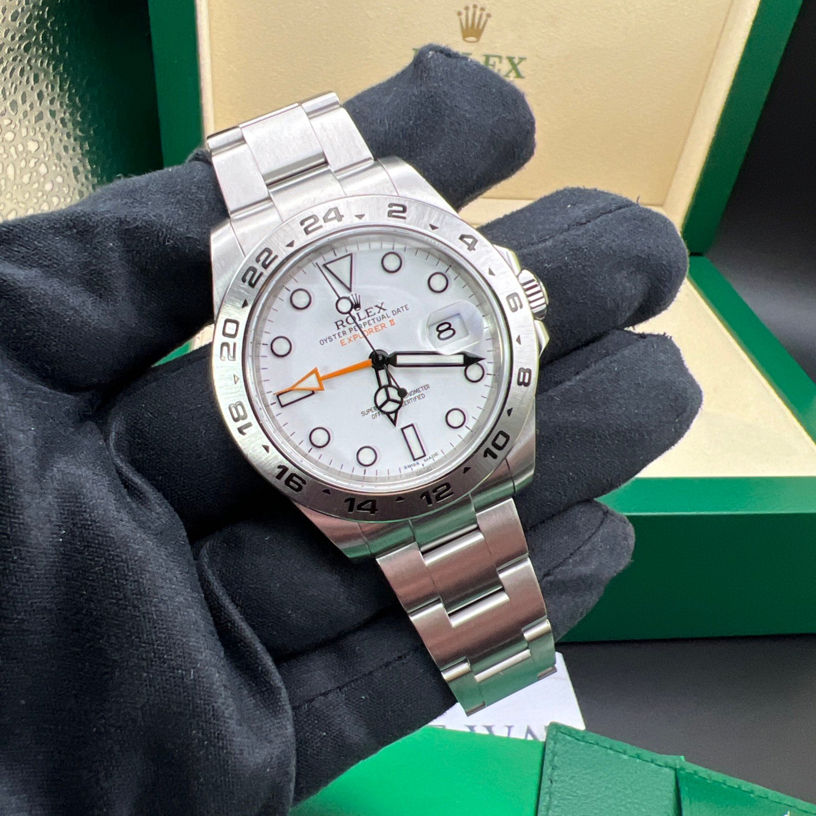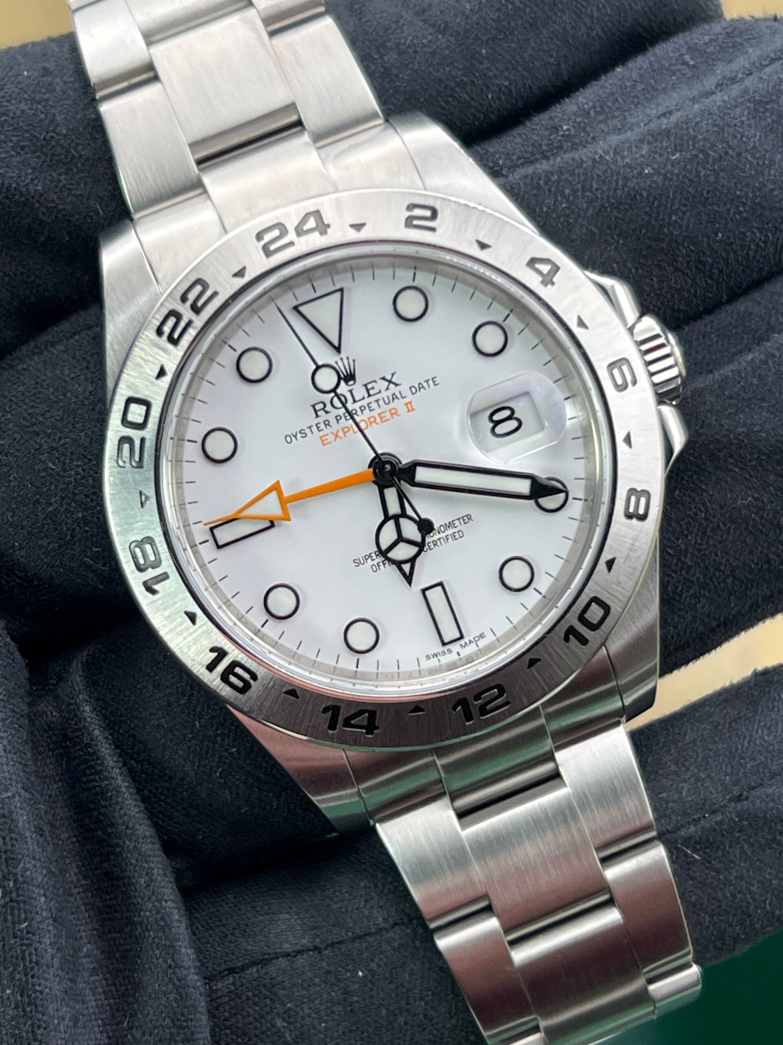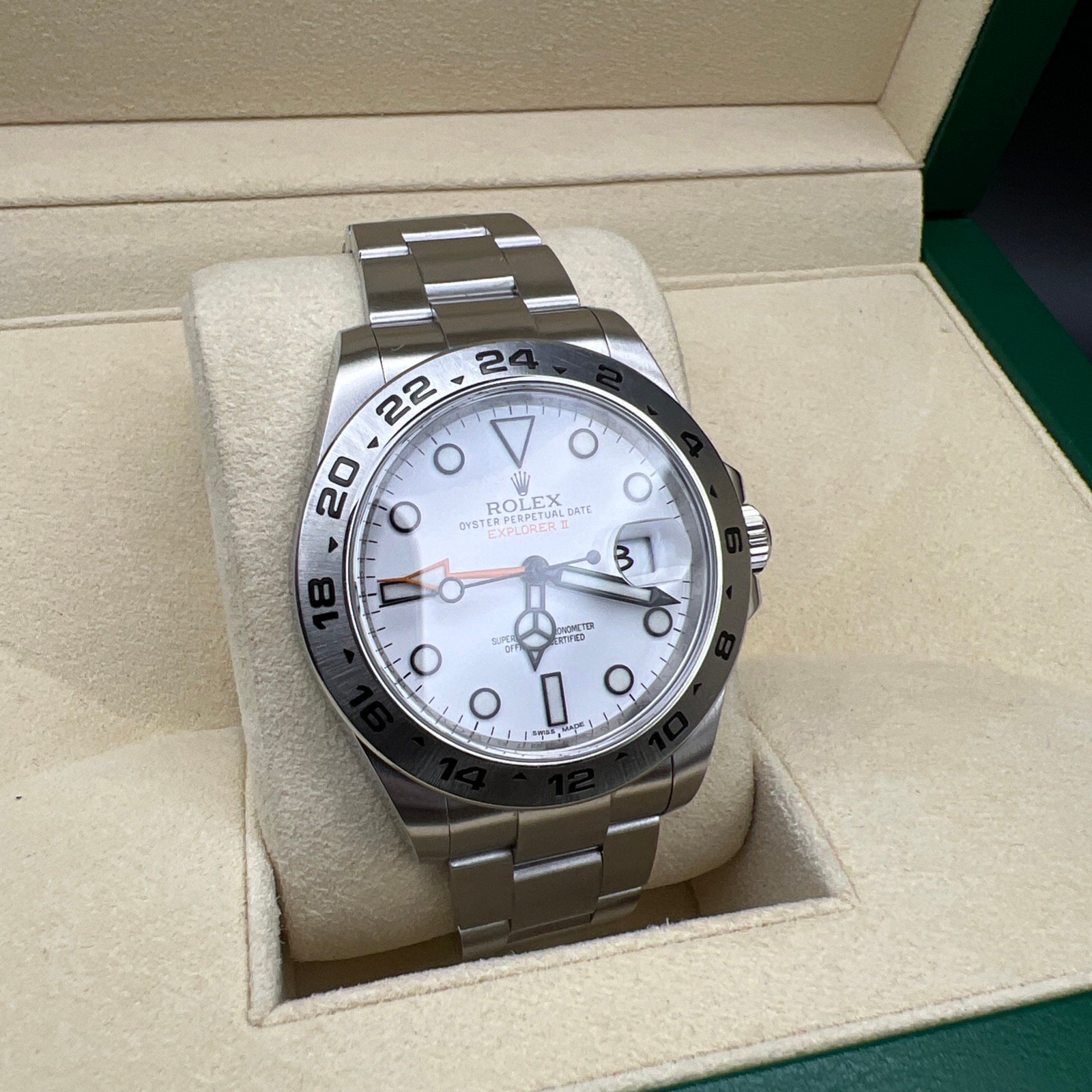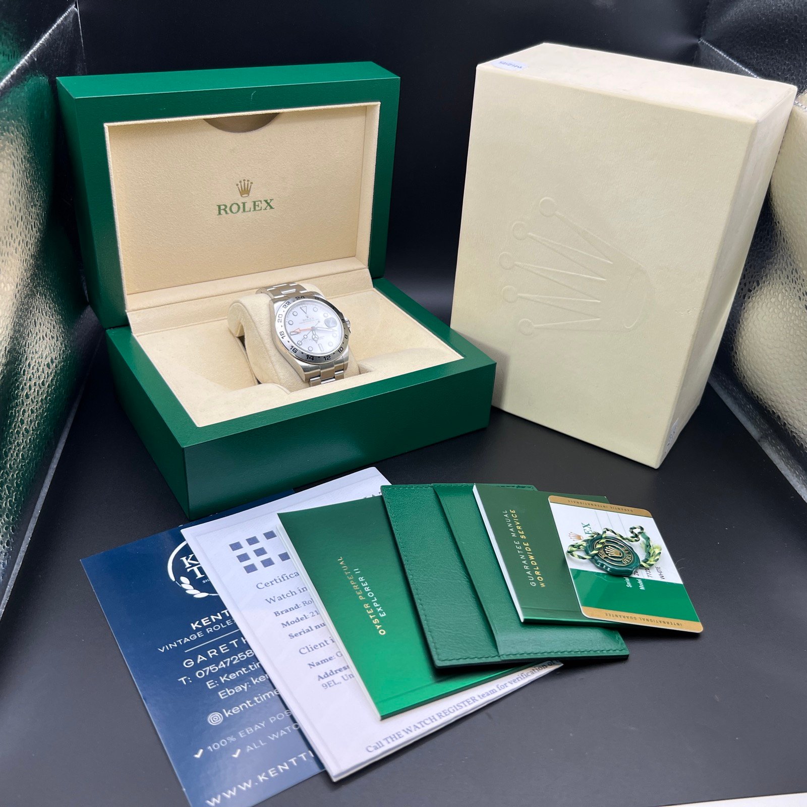 | Rolex Explorer II REFERENCE 116570 42 MM GMT WATCH. The watch was first sold in 2016 and comes presented in original Rolex box with warranty card,tag , spare link, booklets and wallet. It also comes with Watch register certificate included. Watch is in very good overall condition with only the odd mark as evidence of use. The watch is running well as you can see from the time graph photos. Please see our feedback, the photos and our other listings |
