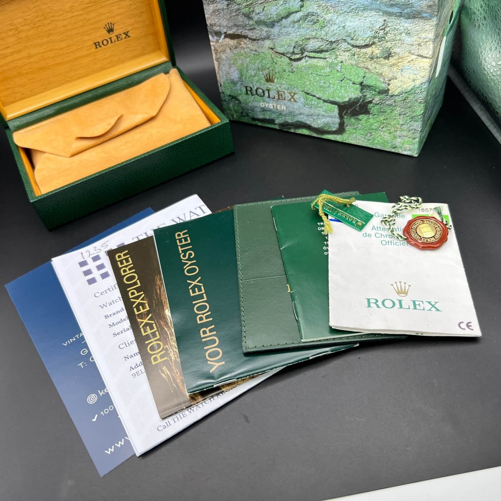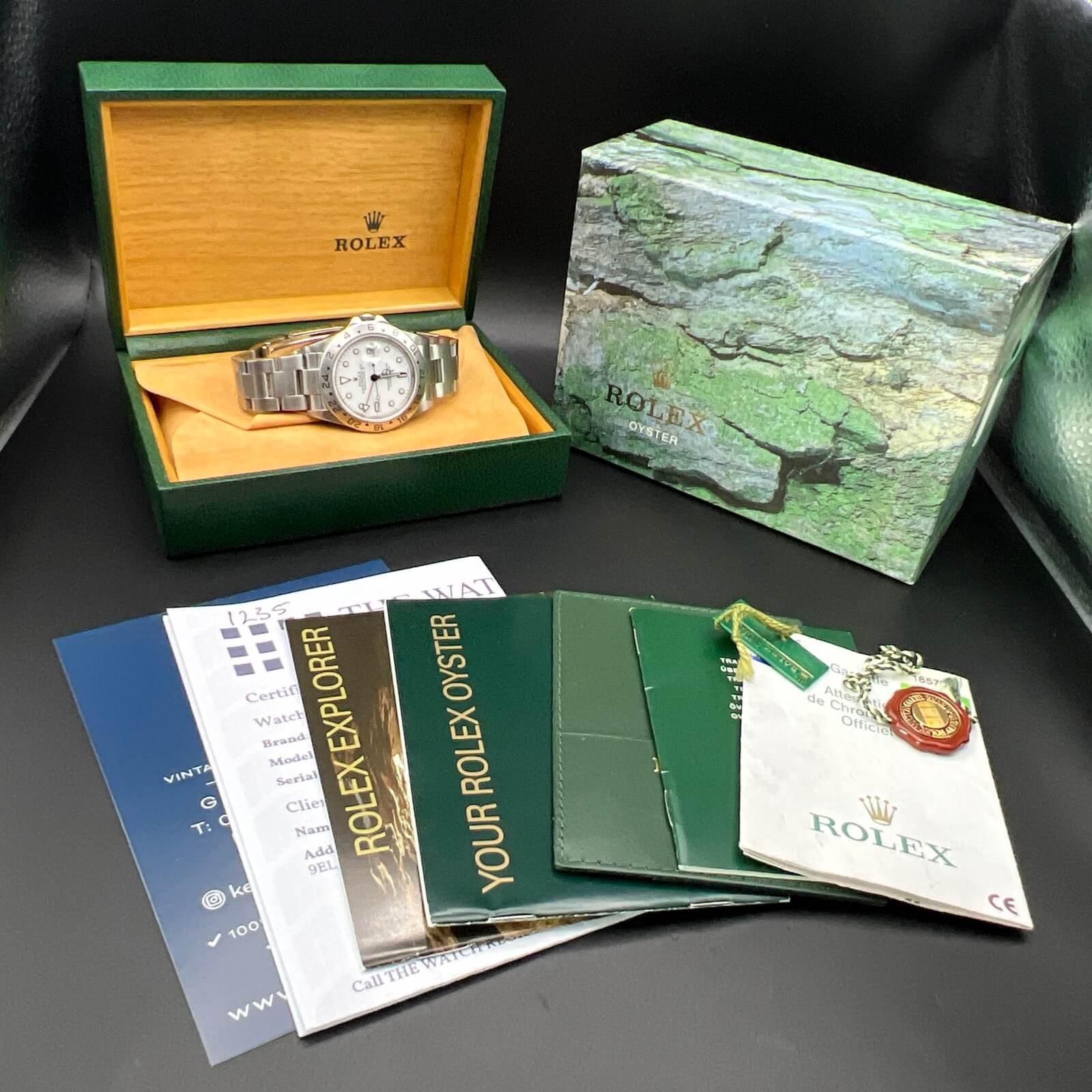 This watch was originally sold in 2004 and comes presented as a full set. This includes the original boxes, papers, booklets, wallet and both tags. You will also receive a Watch register certificate showing it’s free of claims.