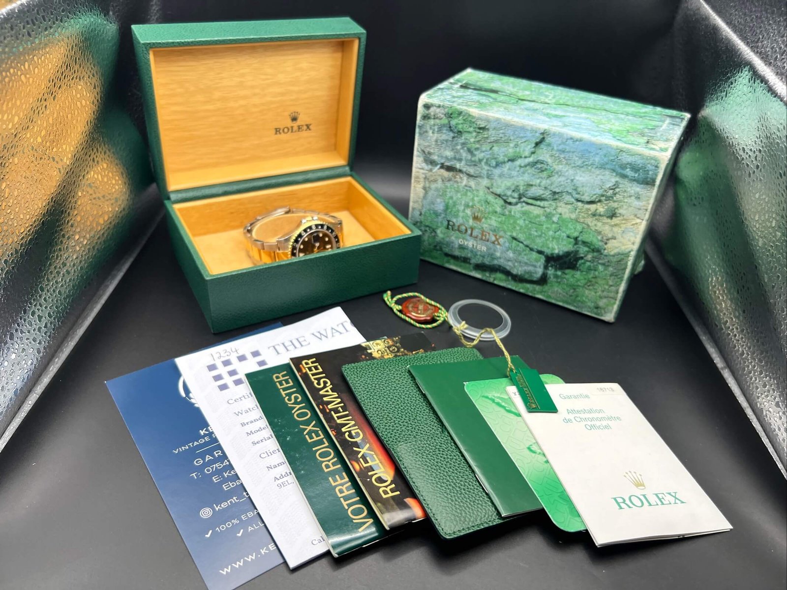This Watch was originally made and sold in 2003. It comes supplied with its original Rolex boxes, papers, booklets, both tags and accessories. You’re also receive a Watch register certificate showing the Watches free from claims.