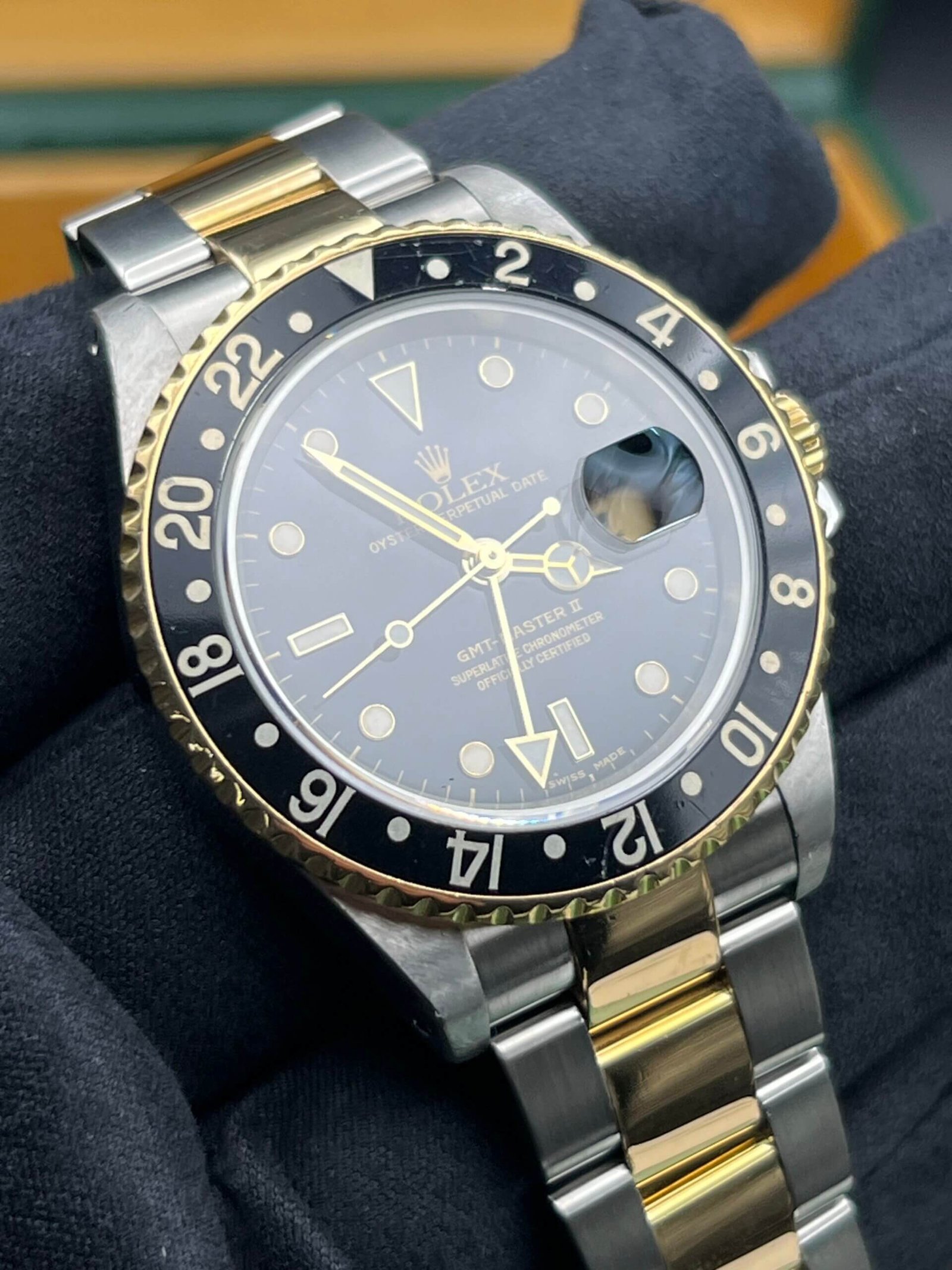 Rolex Gmt master II gents steel and gold 40mm wristwatch.