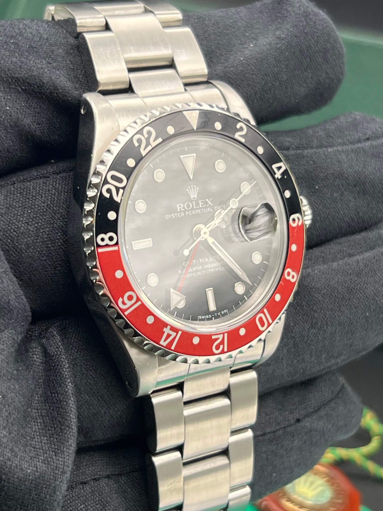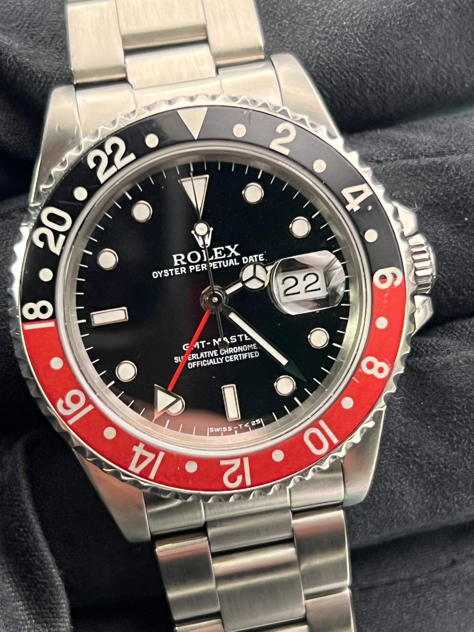Rolex Gmt master reference 16700 from 1991. This is the rarer reference. Gmt is powered by the 3175 calibre quickset date movement.