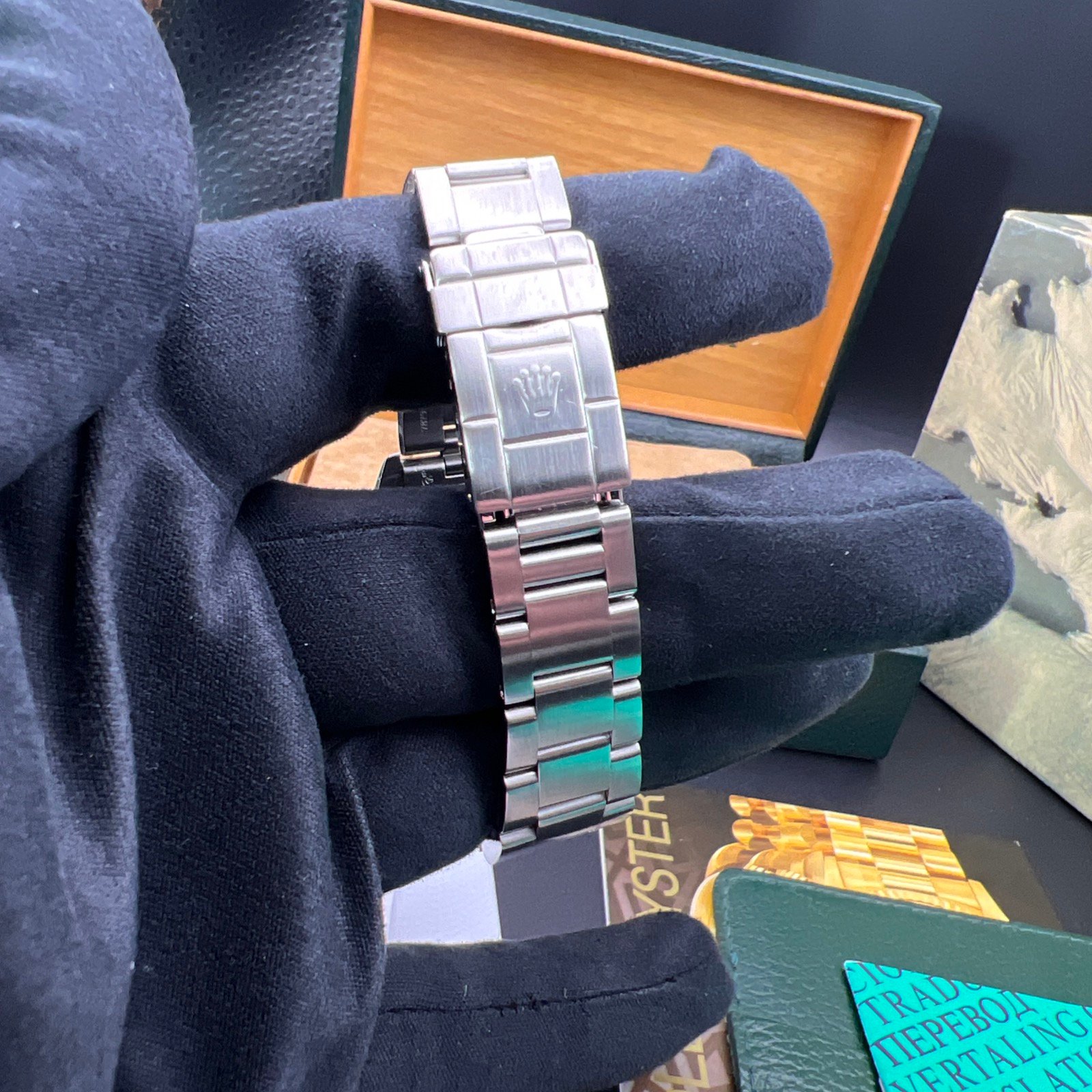 The watch comes presented in Rolex boxes accompanied with wallet, booklet and tag. You’ll also receive a Watch register certificate showing the Watches free of claims, Our authentication certificate.