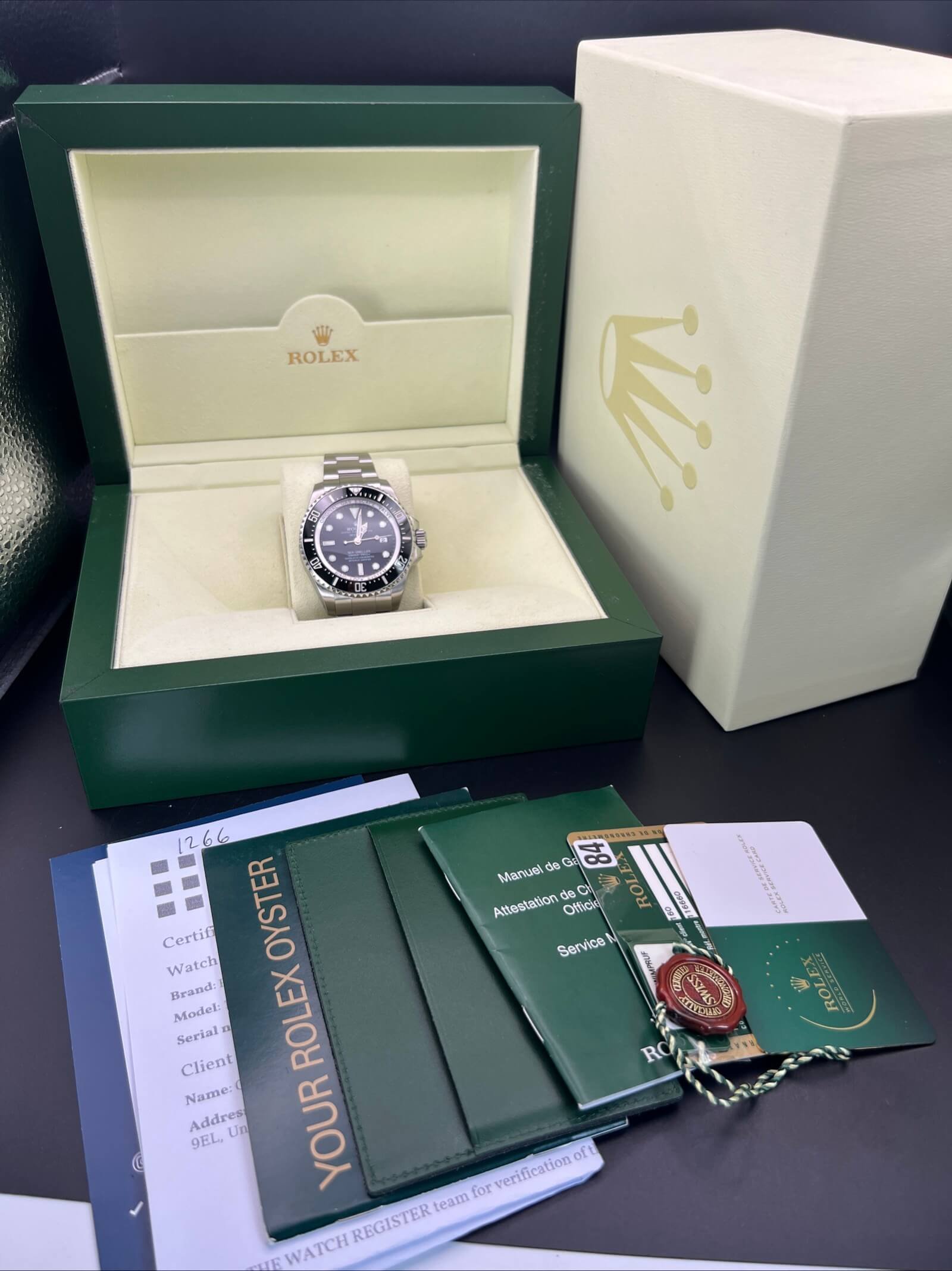 Stunning Rolex seed dweller Deepsea reference 116660. First sold in 2011 and recently fully serviced by Rolex in 2025. It is covered by Rolex service guarantee until August 2027.