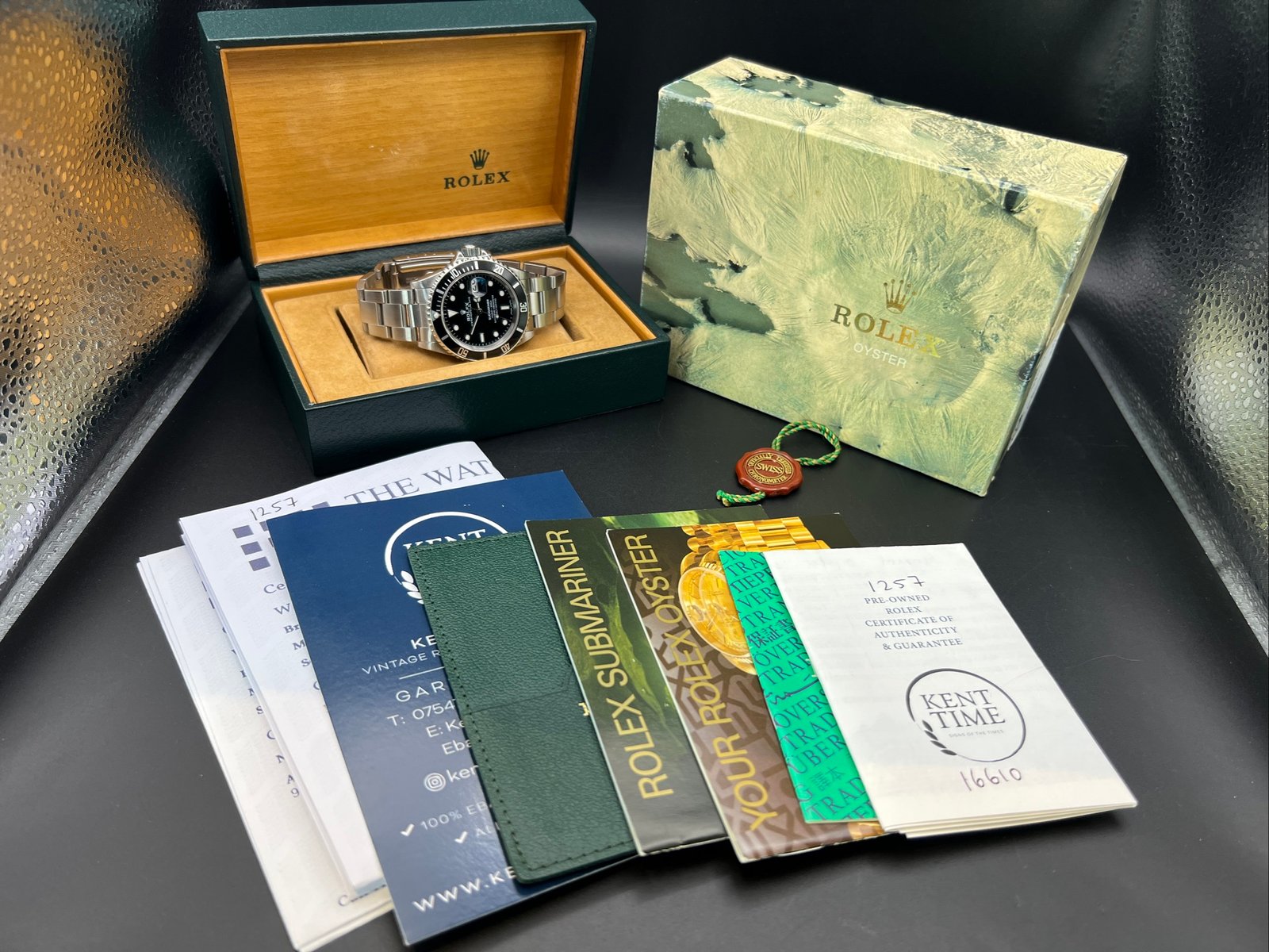 Included are the following Rolex boxes, Rolex wallet, Rolex booklets X3 and a Rolex Tag. You will also receive our authentication certificate, a Watch register certificate