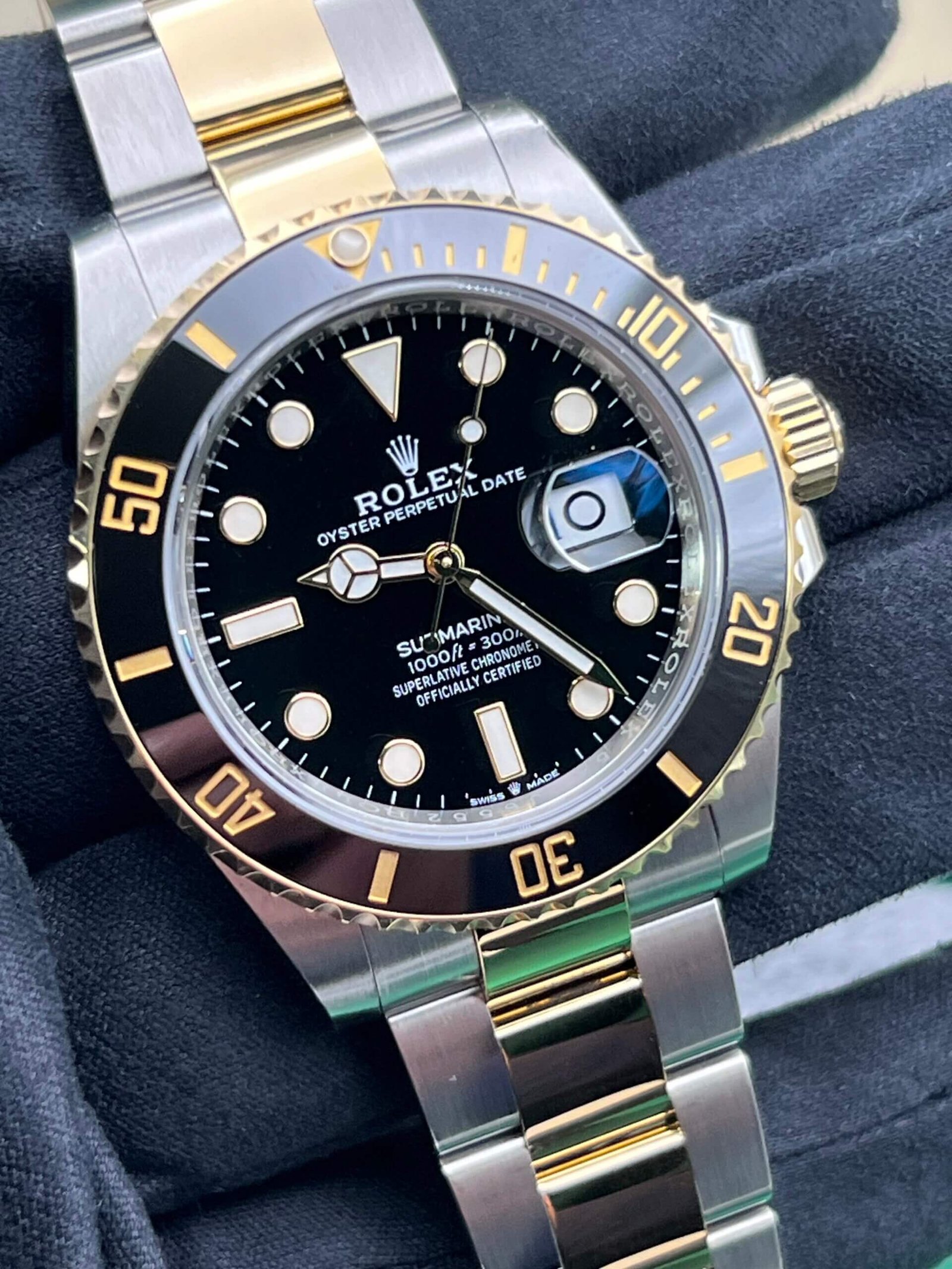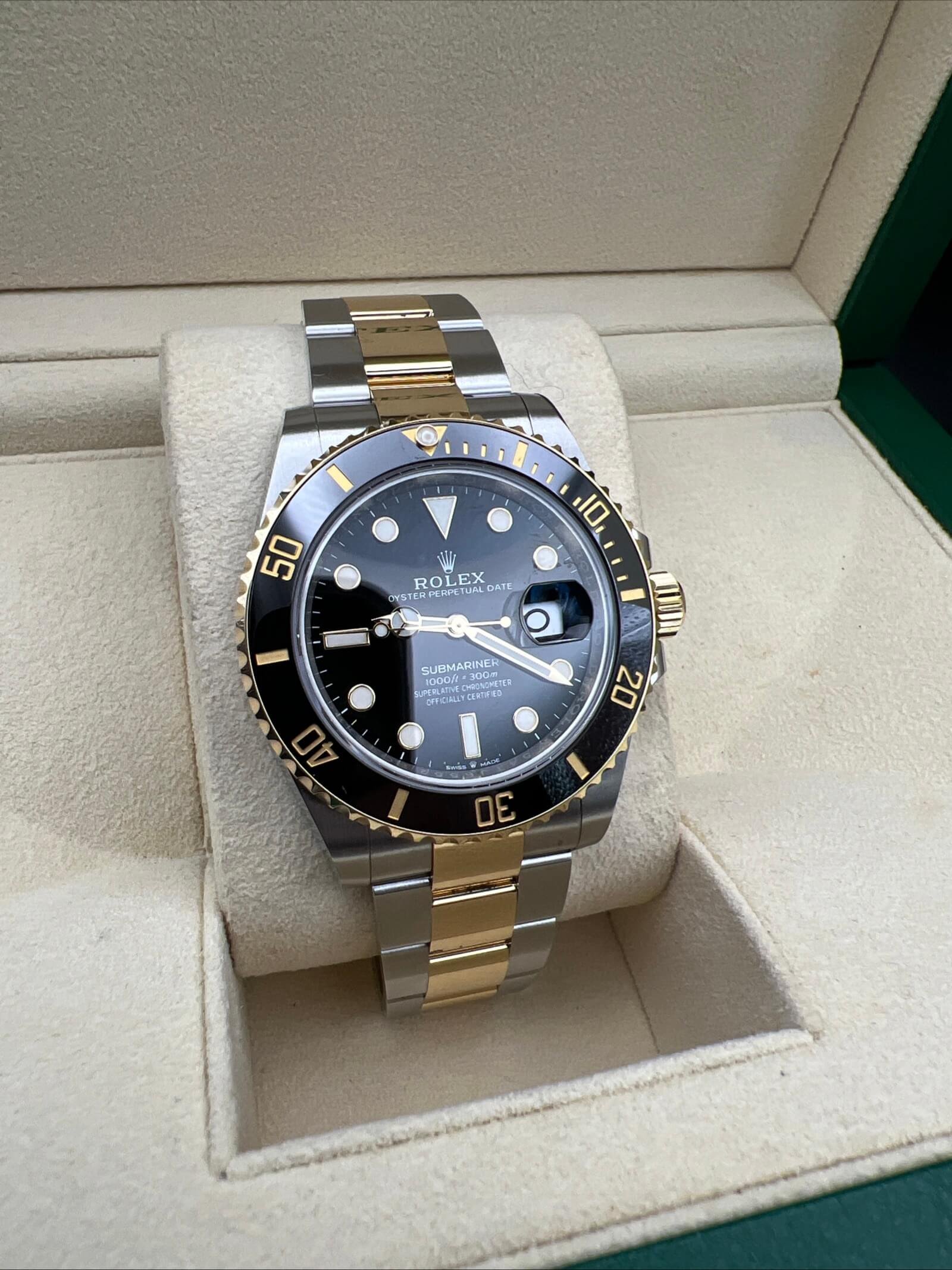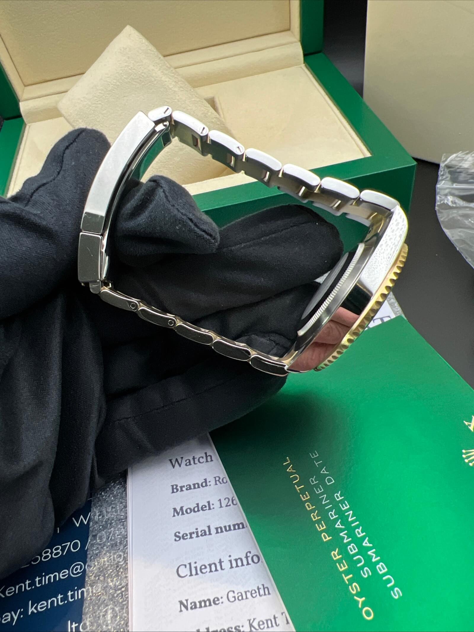 Rolex submariner date model reference 126613LN. This is a stainless steel an 18 K yellow gold model. The Watches presented in very good condition.