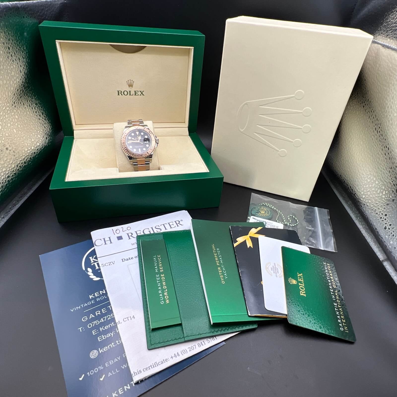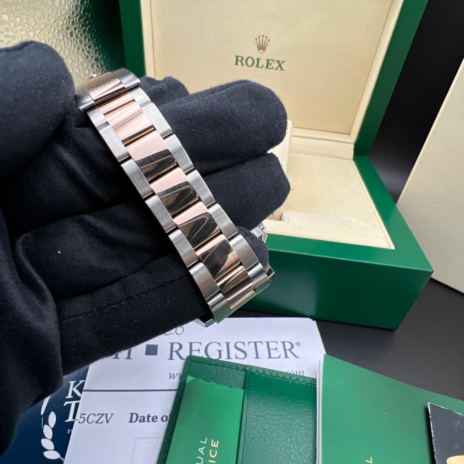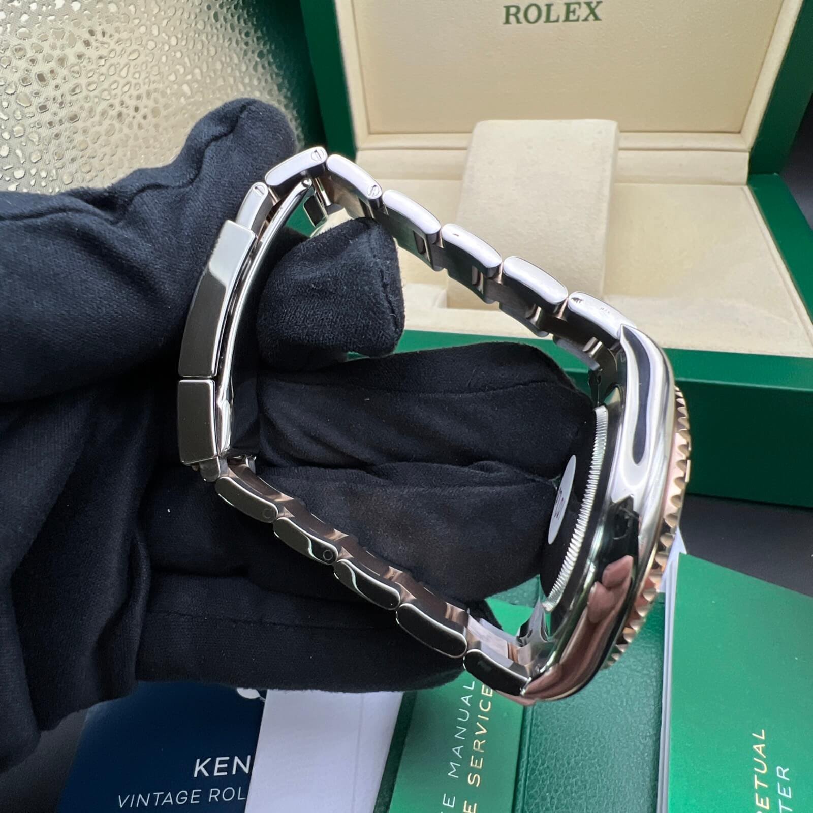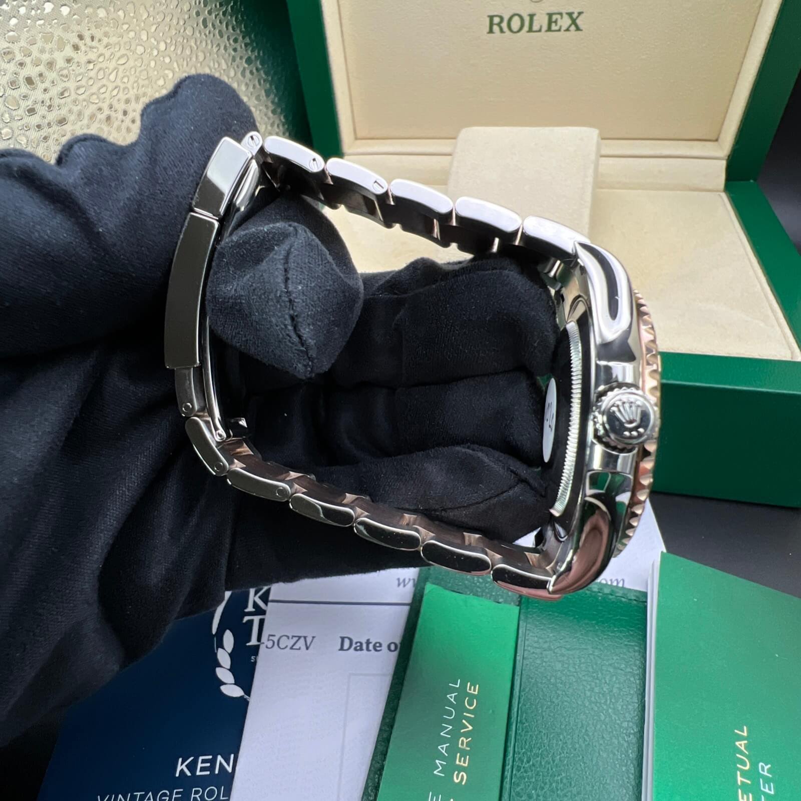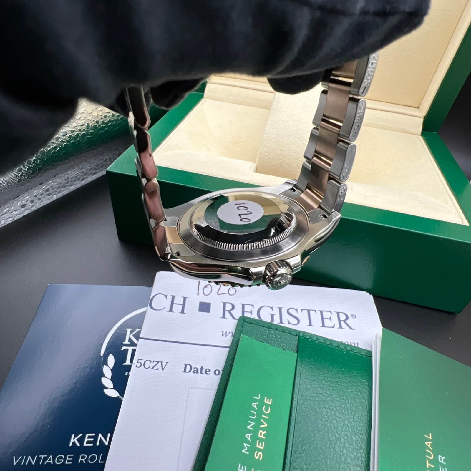 This comes presented as a full set with the original purchase receipt. Included are Rolex boxes, Rolex warranty card, Rolex booklets, Rolex tags and wallet. You will also receive the original purchase receipt and Goldsmith warranty card.