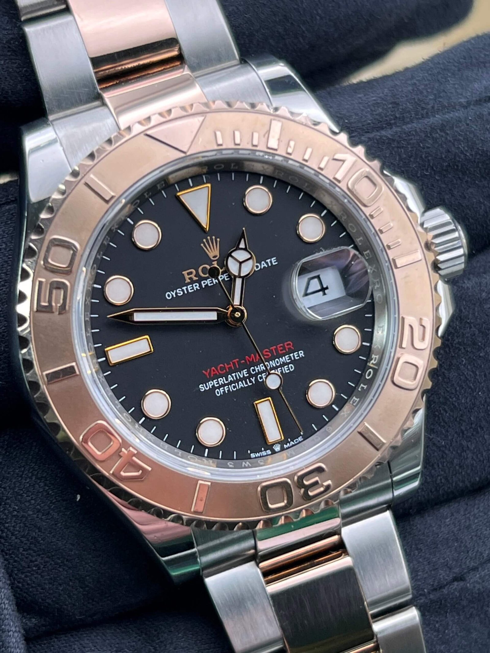 Rolex yacht master reference 16621 40 mm automatic wristwatch. Constructed from stainless steel and 18k Rose gold.