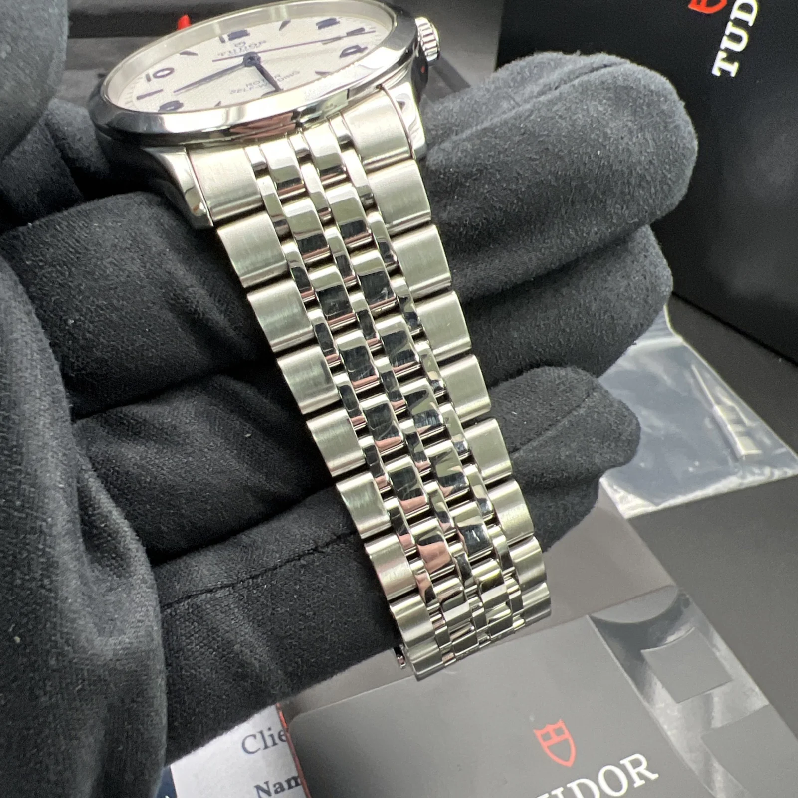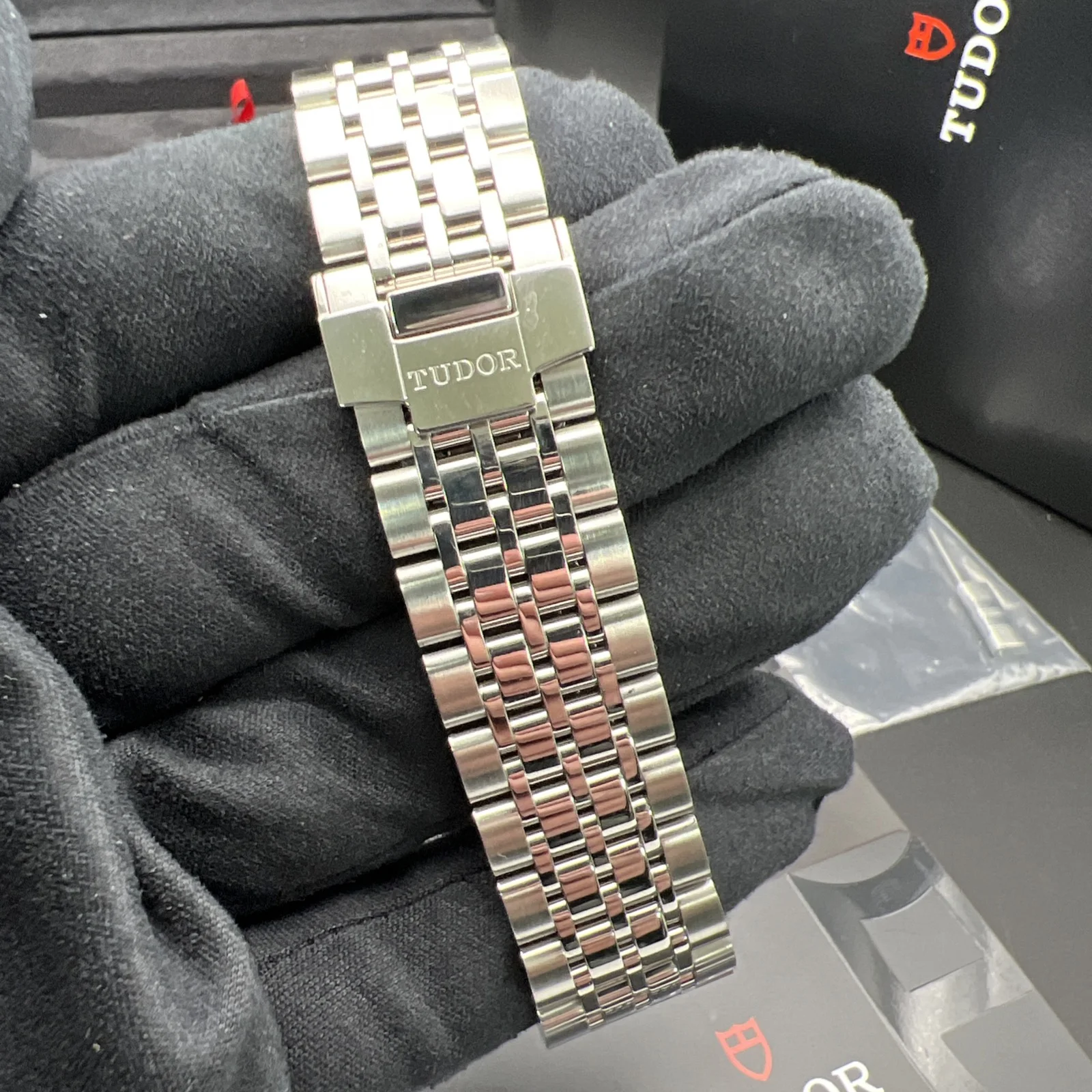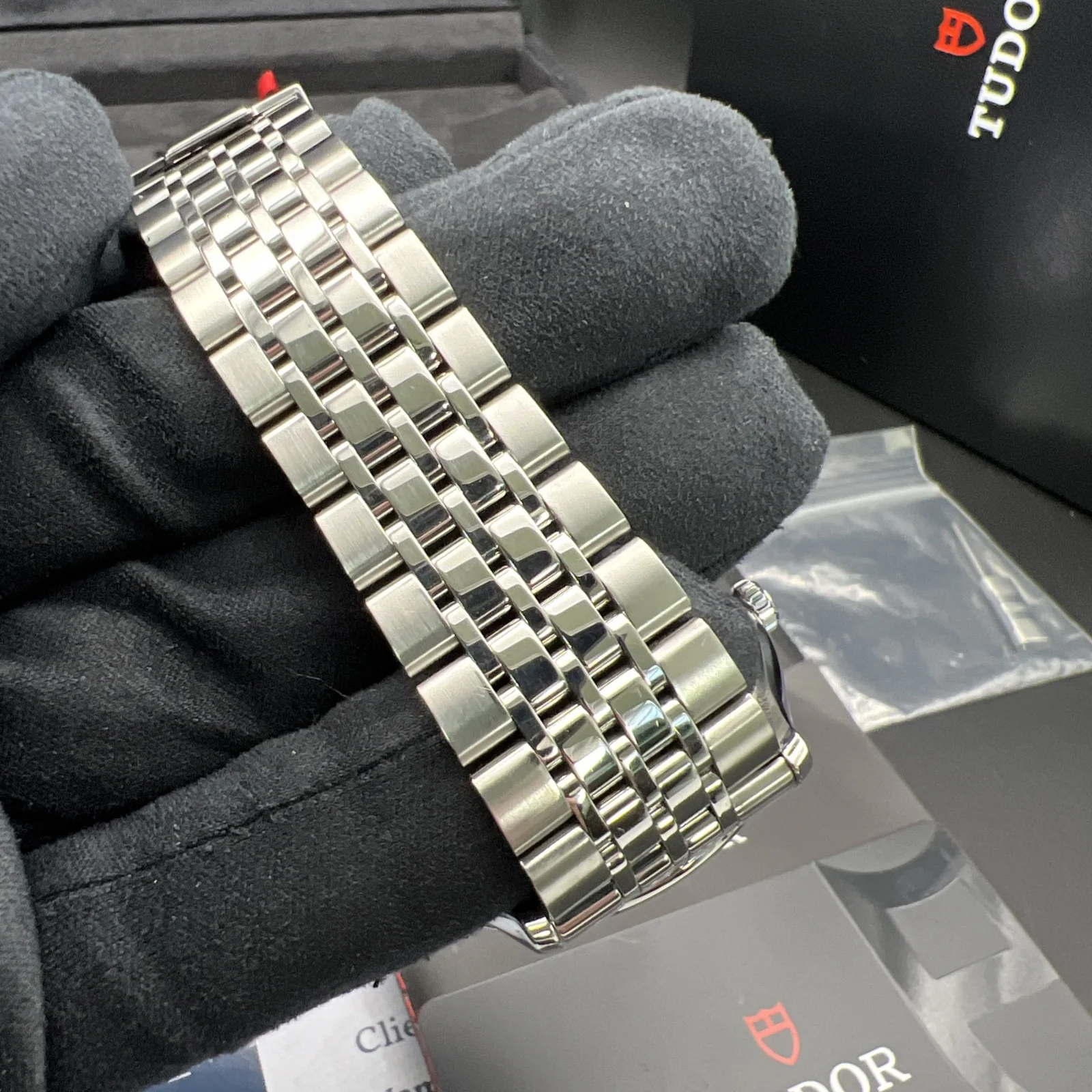 It comes with its original boxes, warranty card and booklets. It has a full compliment of links. It has been Watch register Checked.